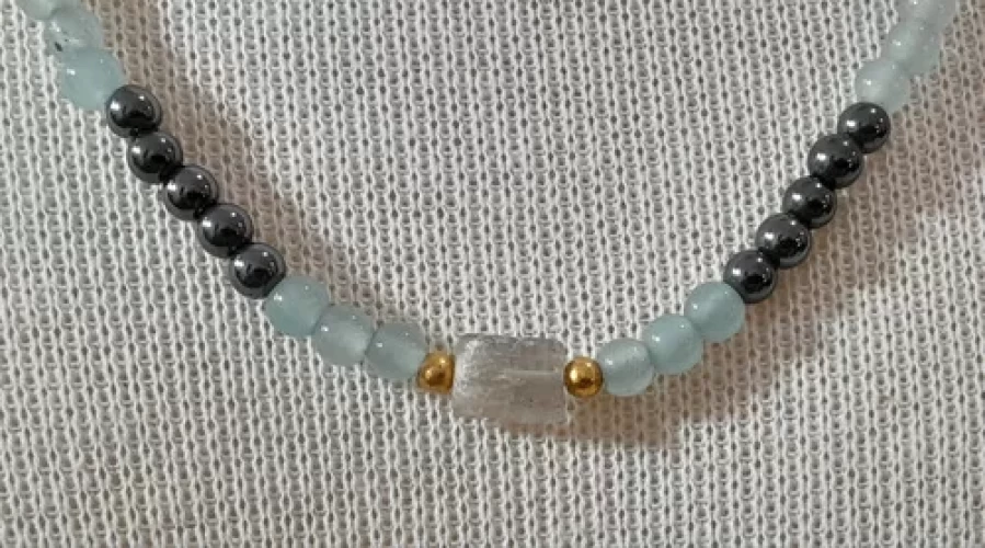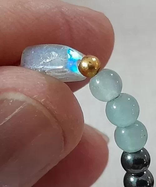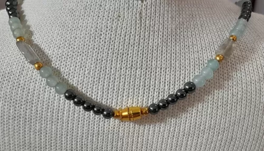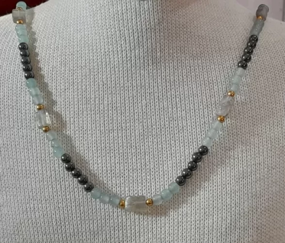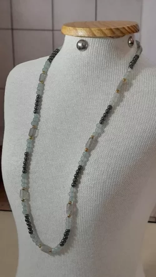 Colar de Labradorita Pedras Multicores e Predominância de Azul Ágata Azul e Hematitas.