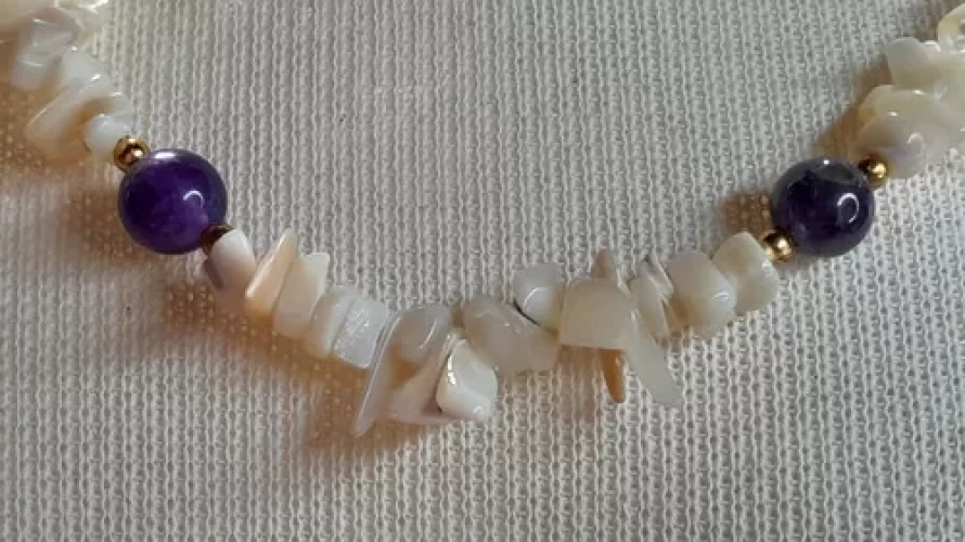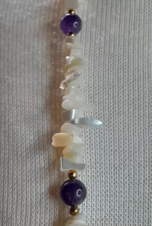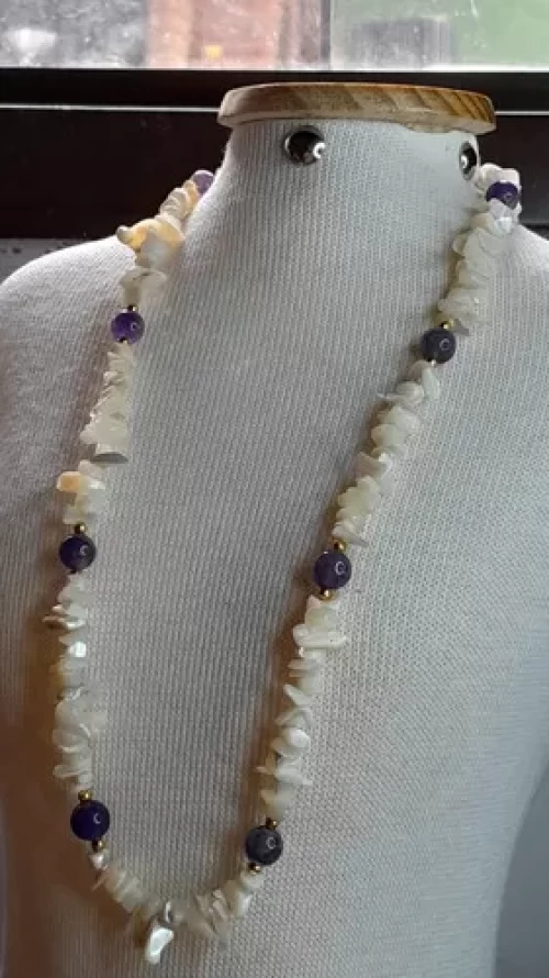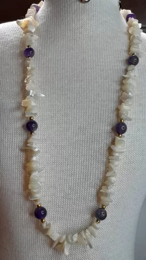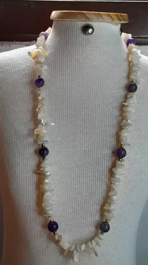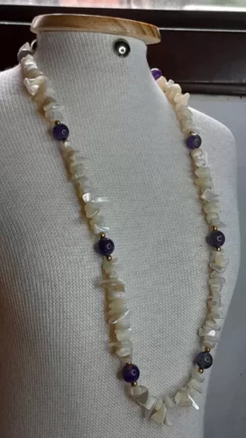 Colar Ametista 8mm e Madre Pérola Cascalho. Peça Exclusiva Confecção Própria Artesanal.