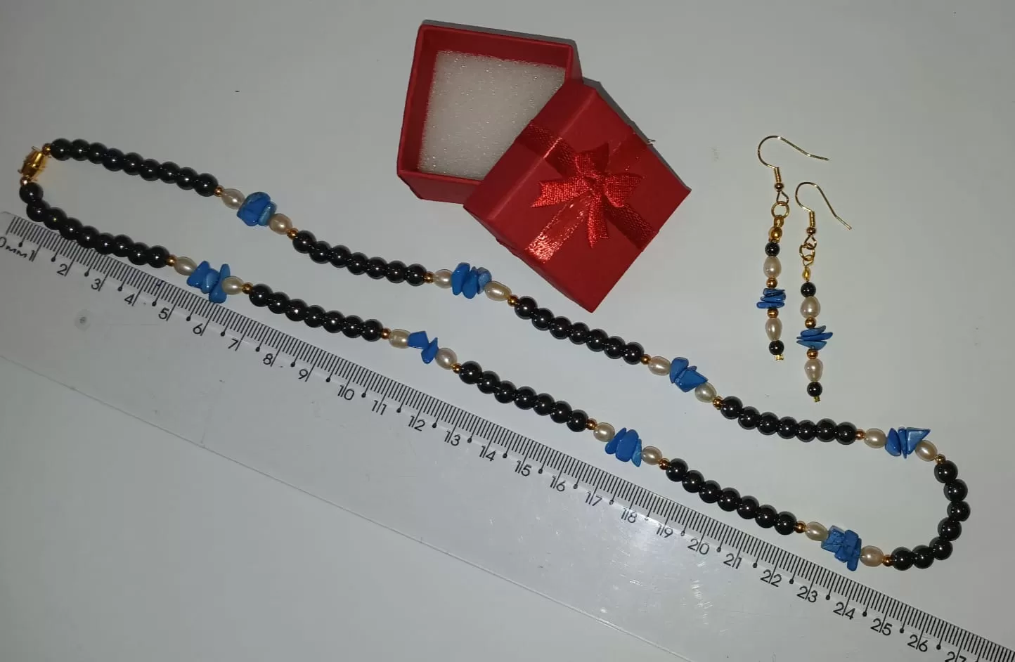 Colar aberto aprox. 54cm – Colar Fechado Aproximadamente 26cm. Brinco 3cm