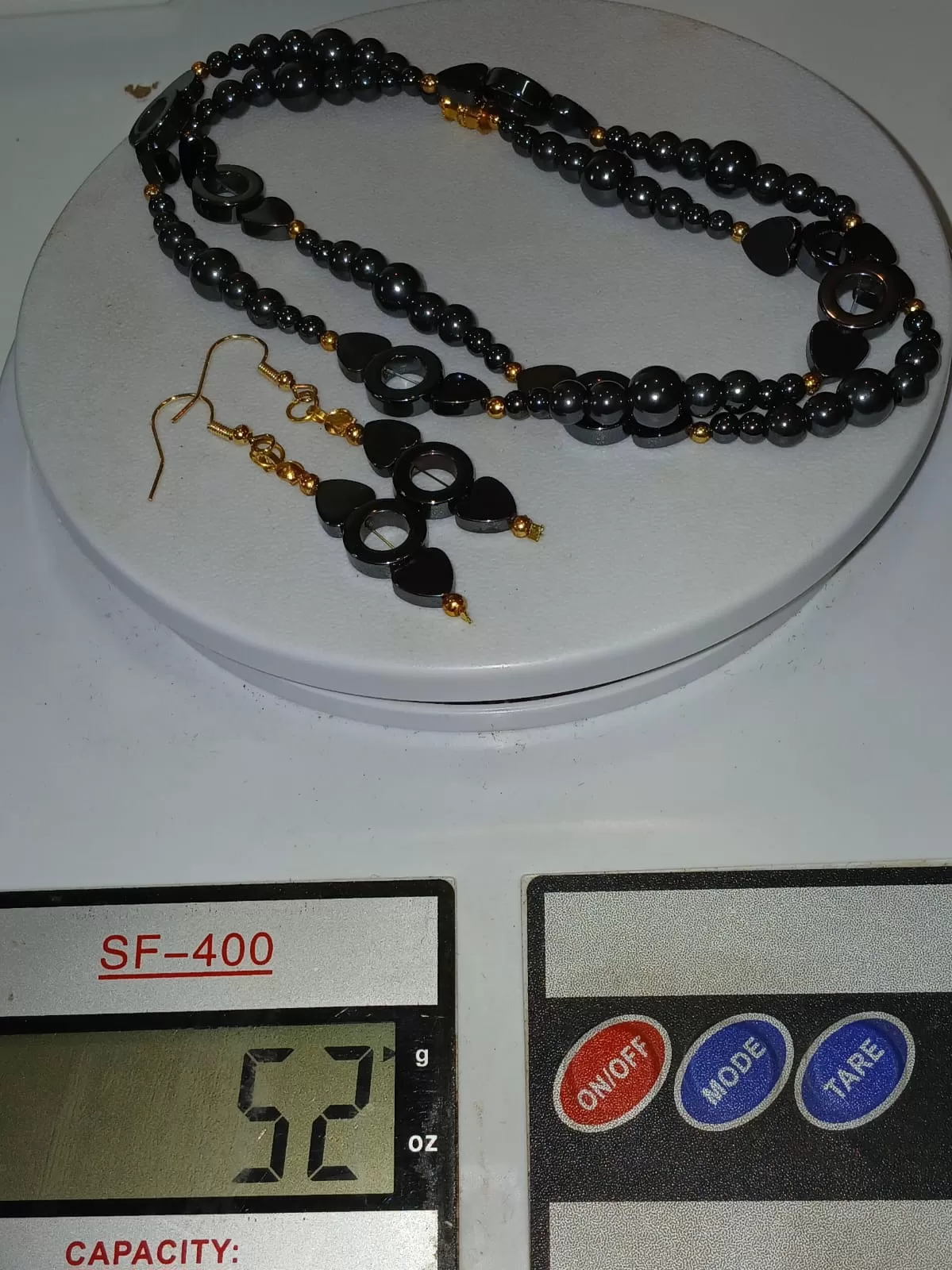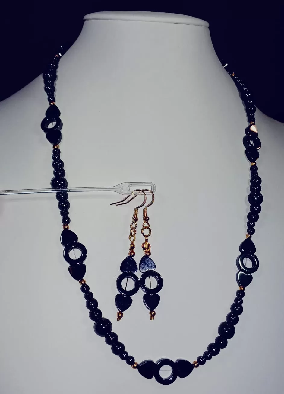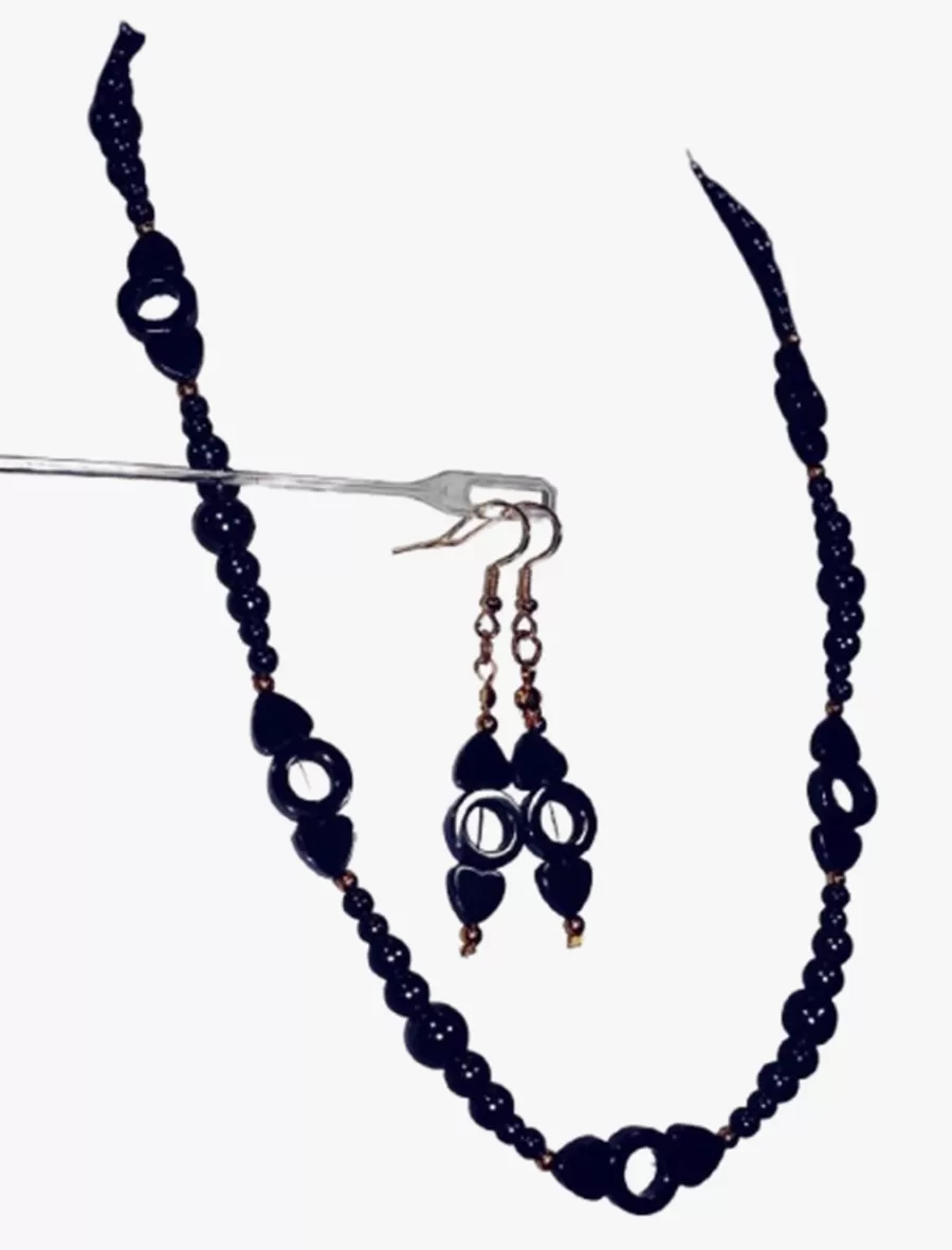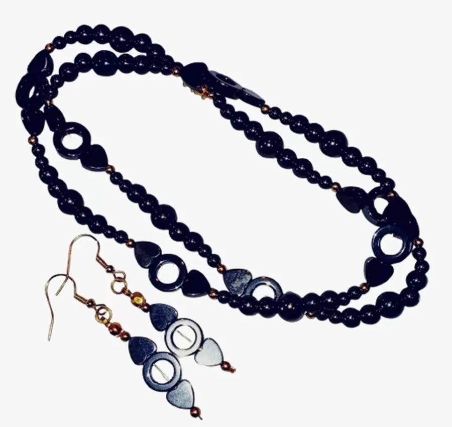 Colar Pedras Naturais Hematitas Lapidadas + Brinco CB780
