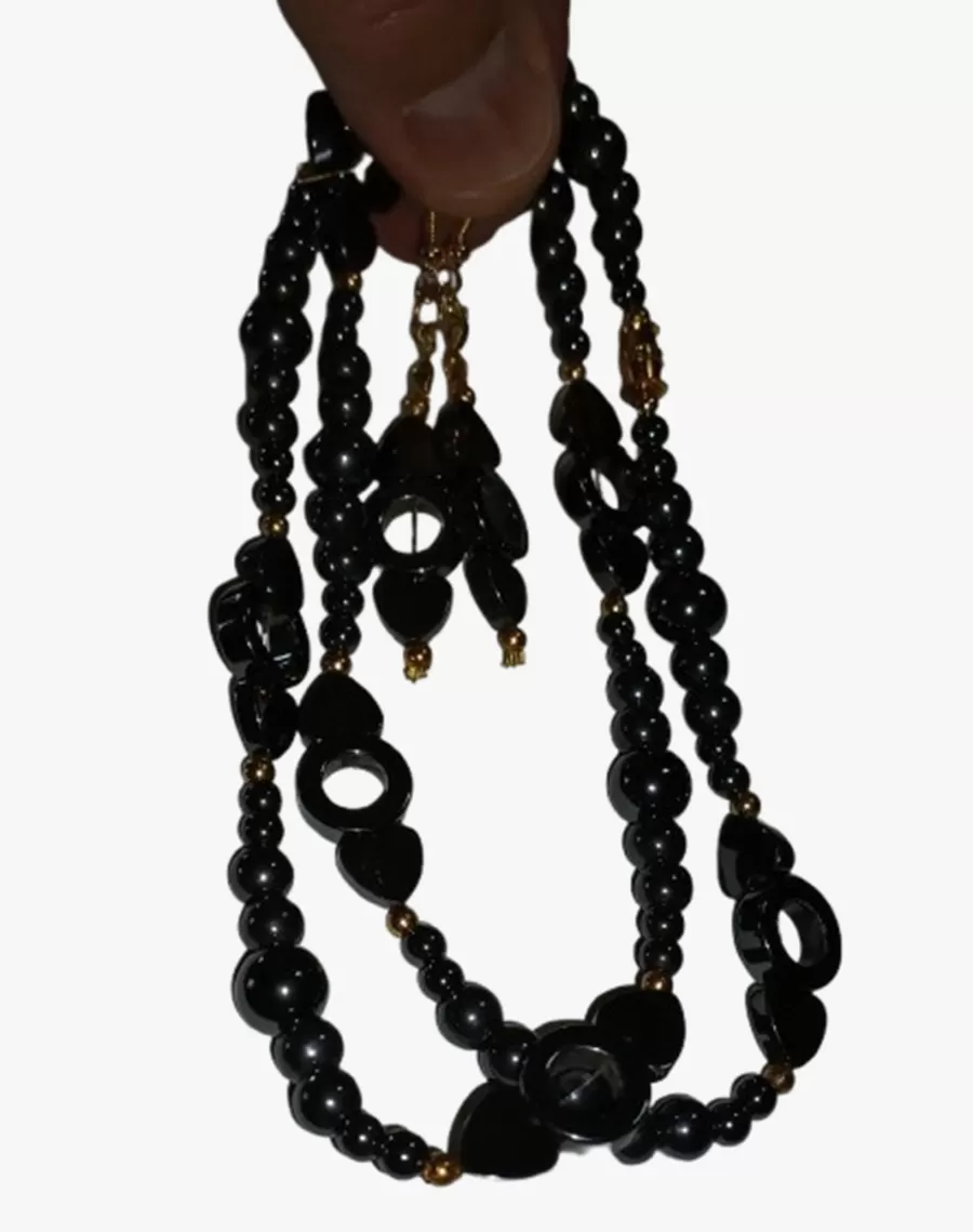 Colar Pedras Naturais Hematitas Lapidações Diversas + Brinco Grátis