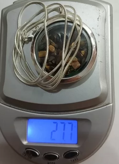 Colar Corrente de PRATA Feixe Lagosta com Pingente pedra OLHO DE TIGRE COM DIFUSOR AROMÁTICO PARA TERAPIA QUE TB. SERVE COMO ESCAPULÁRIO, VEJA ABAIXO.