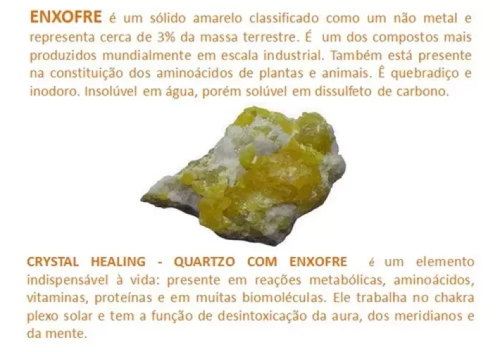 CRISTAIS DE ENXOFRE SOBRE MATRIZ DE QUARTZO COM INCLUSÃO DE CALCITA