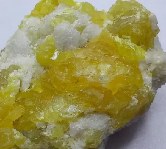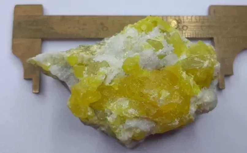 Cristais De Enxofre Sobre Quartzo E Inclusão Calcita Coleção