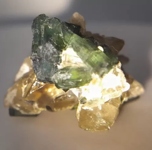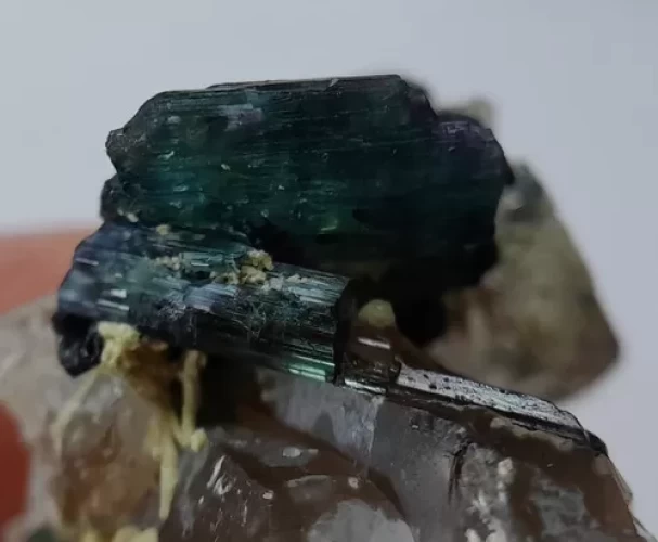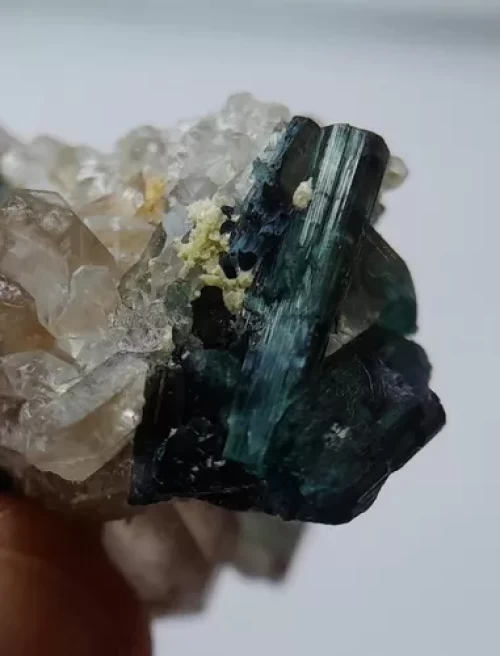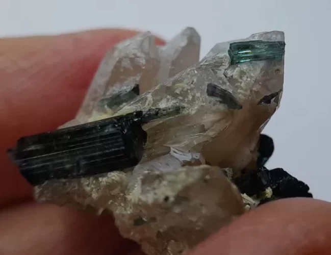 Cristal de Turmalinas Verdes e Azuis no Quartzo Peça de Coleção