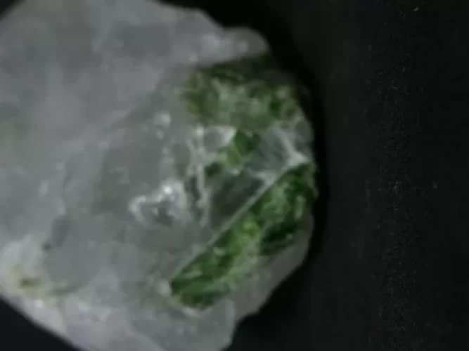 CRISTAL DE FUCHSITA NA ROCHA MATRIZ NO QUARTZO FUCSITE CRYSTAL IN QUARTZ COLLECTION BRAZIL