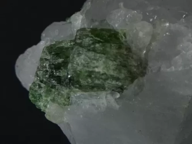 CRISTAL DE FUCHSITA NA ROCHA MATRIZ de QUARTZO