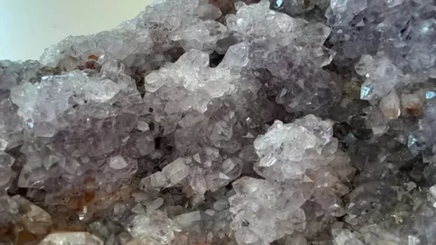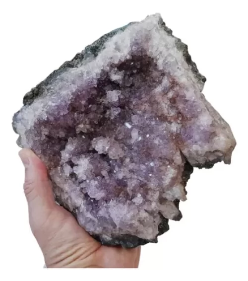Linda Drusa de Ametista com Várias Pinhas em Forma de Flor e Micro Arco-Íris (Iridescência).