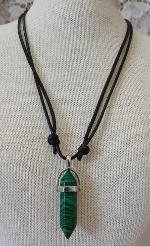 Colar Cordão GARGANTILHA com Pingente DE MALAQUITA RECOSNTITUÍDA com BANHO DE PRATA.