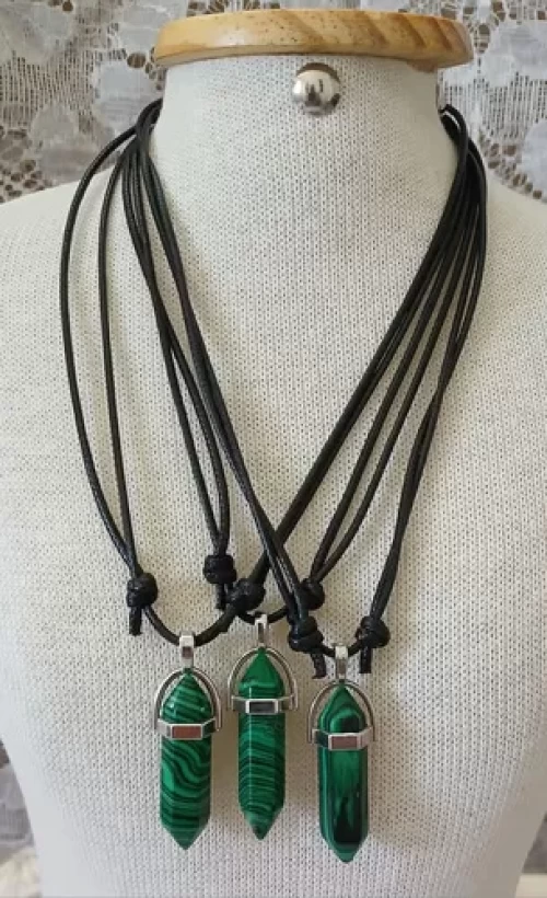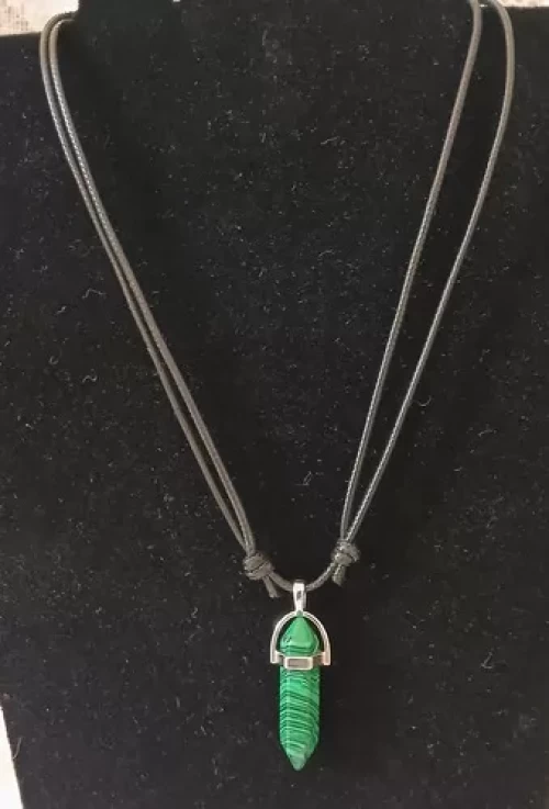 Cordão com Pingente DE MALAQUITA e BANHO DE PRATA.