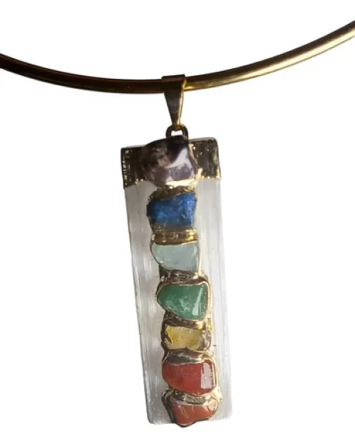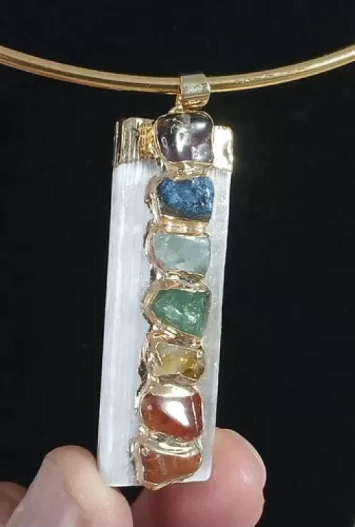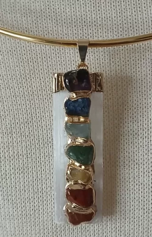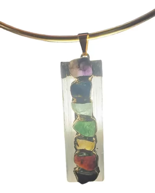 CHOKER PINGENTE SELENITA BRANCA PEDRAS DOS CHAKRAS BANHO DE OURO.