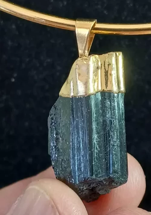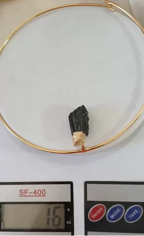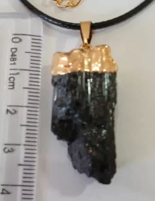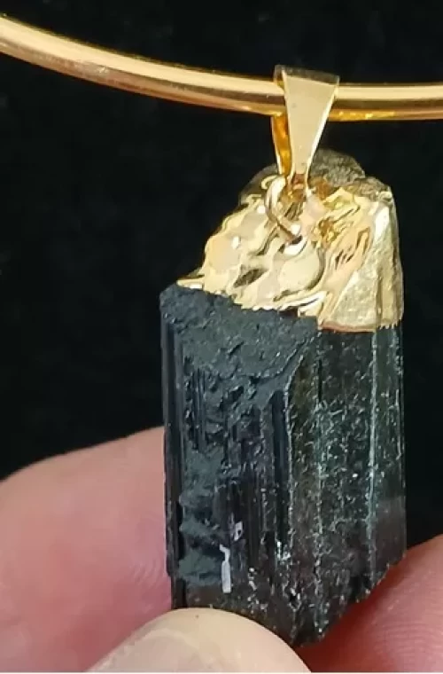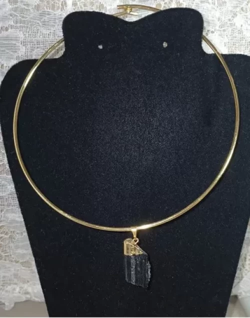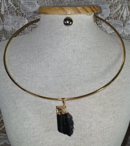 CHOKER c/ Pingente DE TURMALINA PRETA com BANHO DE OURO.
