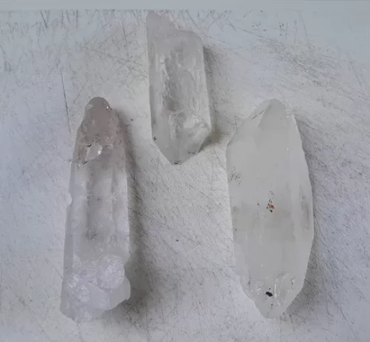 Kit com 2 Pontas e 1 Lasca de Quartzo sendo a 1a. Bi terminada Peça para Colecionadores. Peça de Coleção