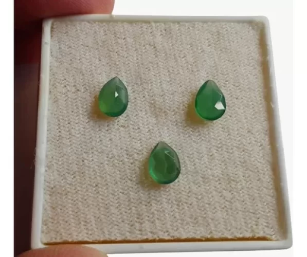 Kit 3 Ágatas Verdes Lágrima 2,5ct Coleção Criar Jóias 2370 L