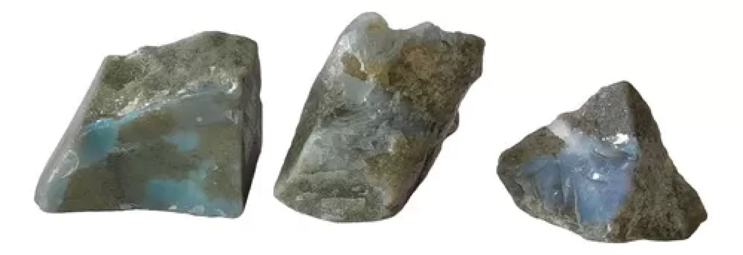 Kit 3 Opalas Cor Predominante Azul Claro e Branco na Rocha Matriz. Linda Peça para Colecionador.