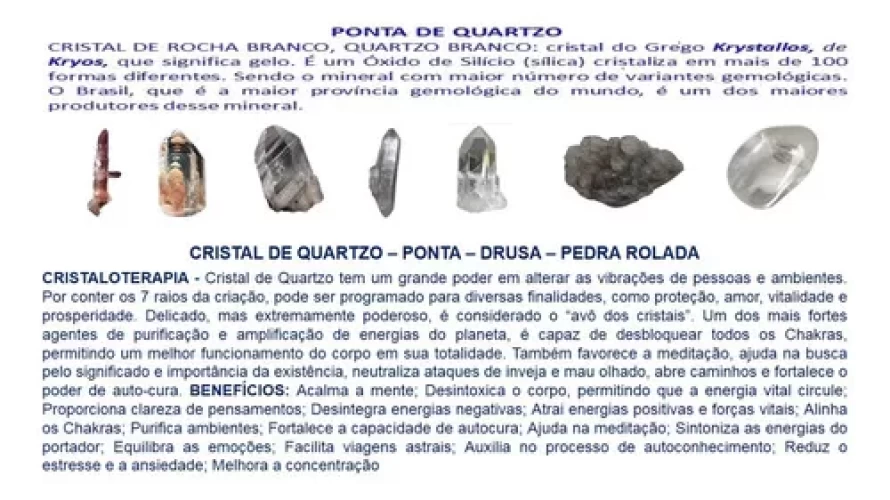 CRISTAL DE ROCHA: Também conhecido como Quartzo, a palavra deriva do grego “Krystallos” que significa gelo.
