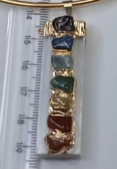 PINGENTE SELENITA BRANCA C/ 7 PEDRAS DOS CHAKRAS, BANHO DE OURO.