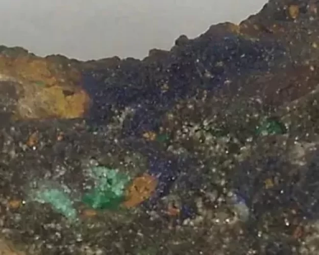 AZURITA MALAQUITA CRISTALIZADAS (MINI CRISTAIS) NA ROCHA MATRIZ (BARRO PETRIFICADO).