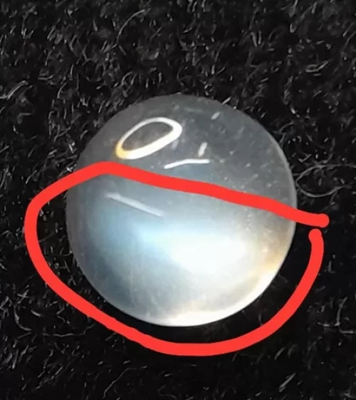 Pedra da Lua (Feldspato) com fenômeno de Chatoyance fazendo um “LUAR” sobre a pedra.