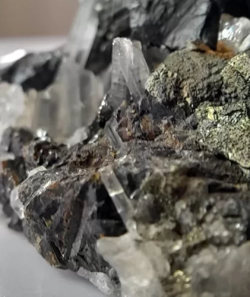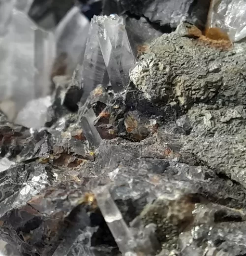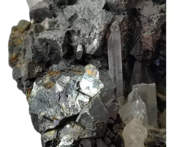 Raro Agrupamento de Minerais. Pirrotita na Galena com Pontos de Pirita e Pontas Límpidas de Cristais de Quartzo. ATENÇÃO várias fotos com luz atrás/próxima da gema para melhor visualização de cores. Fotos Macro com utilização de lentes de 5 até 10X.