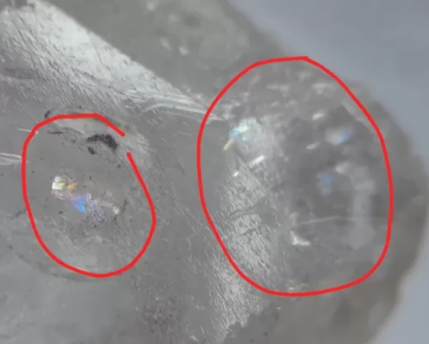 Os dados SÃO próximos do meio do mineral. Um risquinho da sua régua é um (1) milímetro.