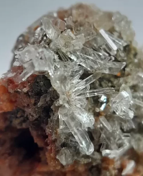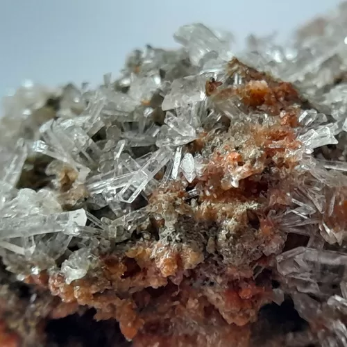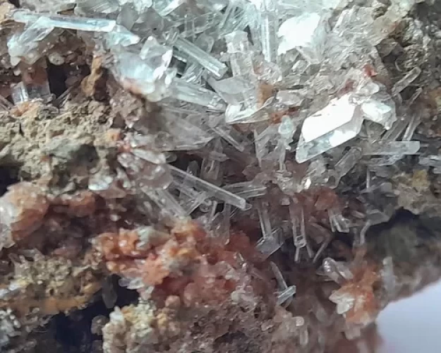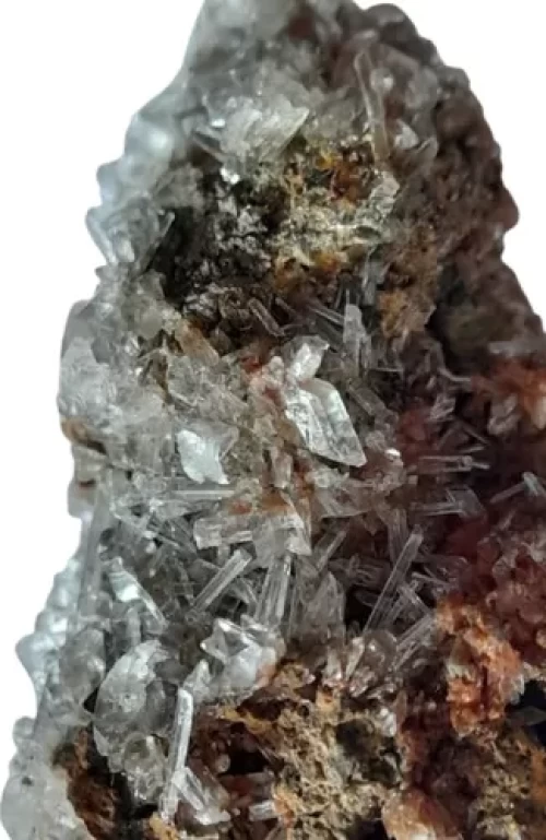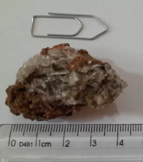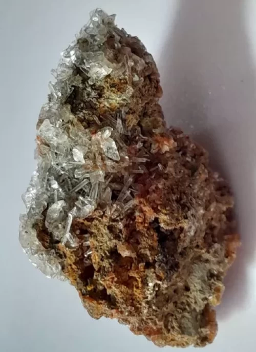 Cristais de Hemimorfita sobre Limonita na Rocha Matriz de Barro Petrificado.