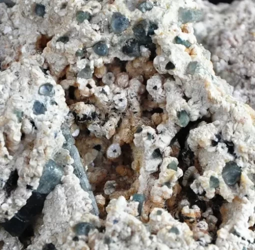 na ALBITA com LEPDOLITA e MUSCOVITA no CALCÁRIO Magníficos Cristais Azuis