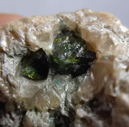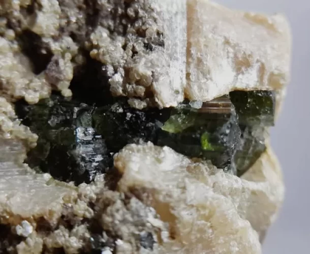 Turmalina Verde (VERDELITA) Cristais sobre Albita com inclusão de Micas